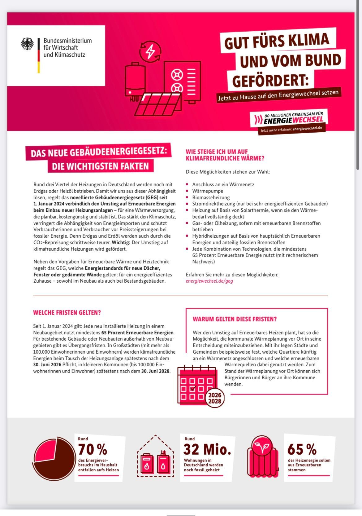 Mit dem Gebäudeenergiegesetz (GEG) 2024 gibt die Bundesregierung neue Richtlinien für die Energieeffizienz von Gebäuden und den Einsatz erneuerbarer Energien vor. Die wichtigsten Informationen und was beim Einbau neuer Heizungen beachtet werden muss, finden Sie schnell und kompakt in der nächsten Zeile.